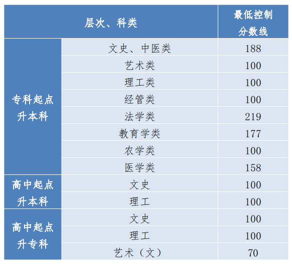 根據教育部下達我省2023年成人高校招生計劃,結合全省考試總體情況,省招生委員會劃定貴州省2023年成人高校招生各層次、科類最低錄取控制分數線,現公布如下: