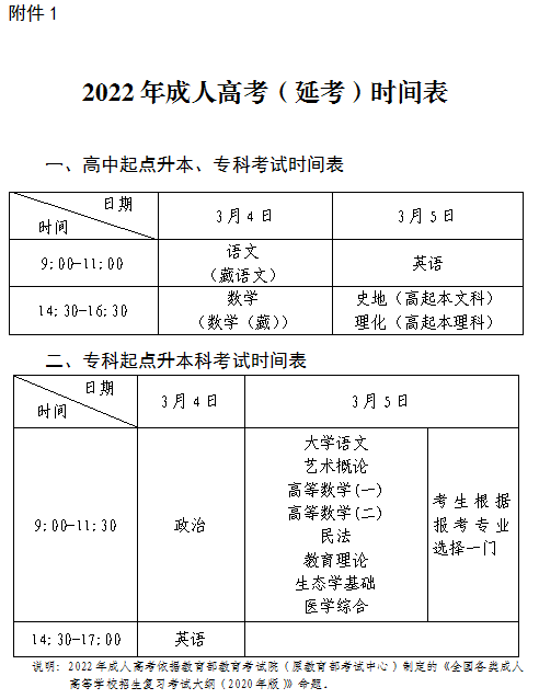 2022年成人高考(延考)考前溫馨提示