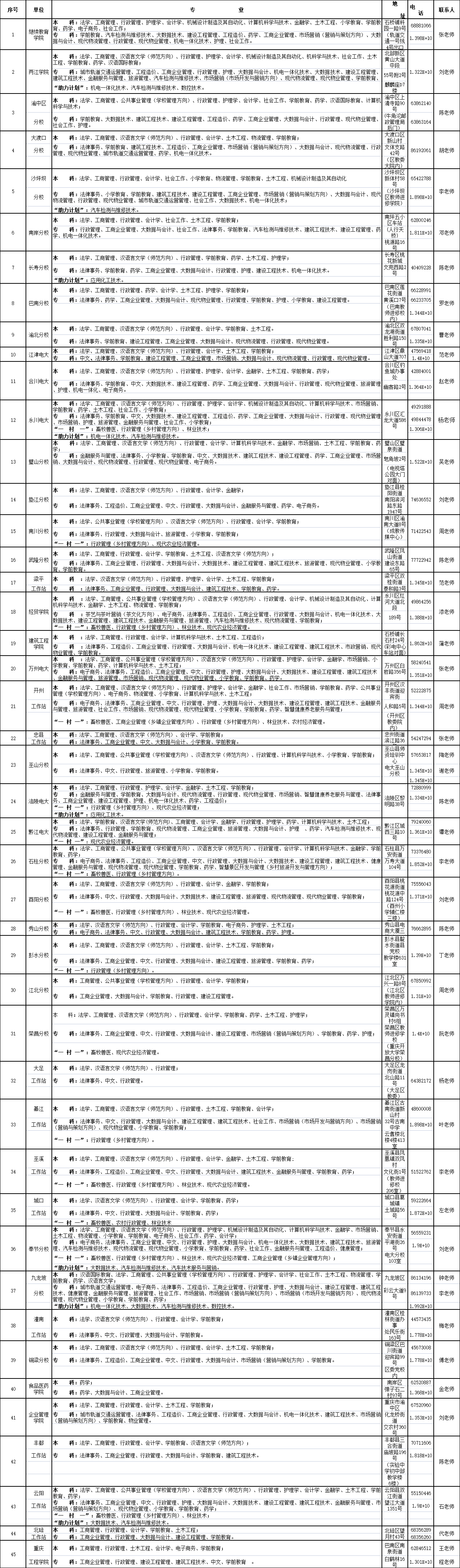 基層辦學單位遍布重慶市每一個區縣,為求學者提供最便捷的學習地點,為你提供最及時的貼心服務,讓你感受到大學就在你的身邊。