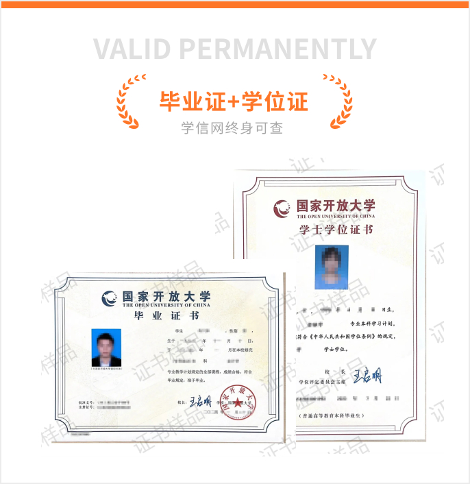 實行學分制,學籍自注冊入學起八年內有效。根據教育部有關要求,本科、專科專業最短學習年限為兩年半。符合畢業要求的,頒發國家承認的專科或本科學歷畢業證書,教育部給予畢業證書電子注冊。國家開放大學開放教育本、專科畢業證書可在教育部唯一學歷證書查詢網站—中國高等教育學生信息網(www.chsi.com.cn)查詢。本科(專科起點)學生符合條件可在畢業前按規定申請國家開放大學學位。證書展示如下。