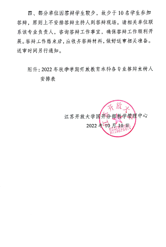 關于公布2022年秋季學期國家開放大學江蘇分部開放教育本科各專業答辯主持人安排的通知