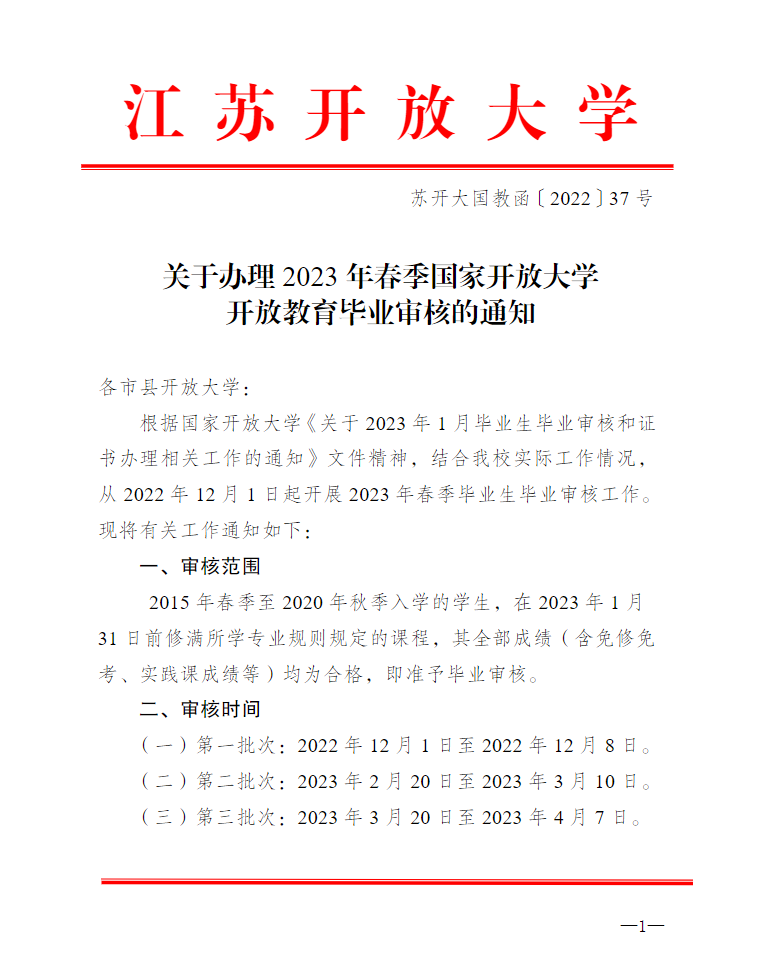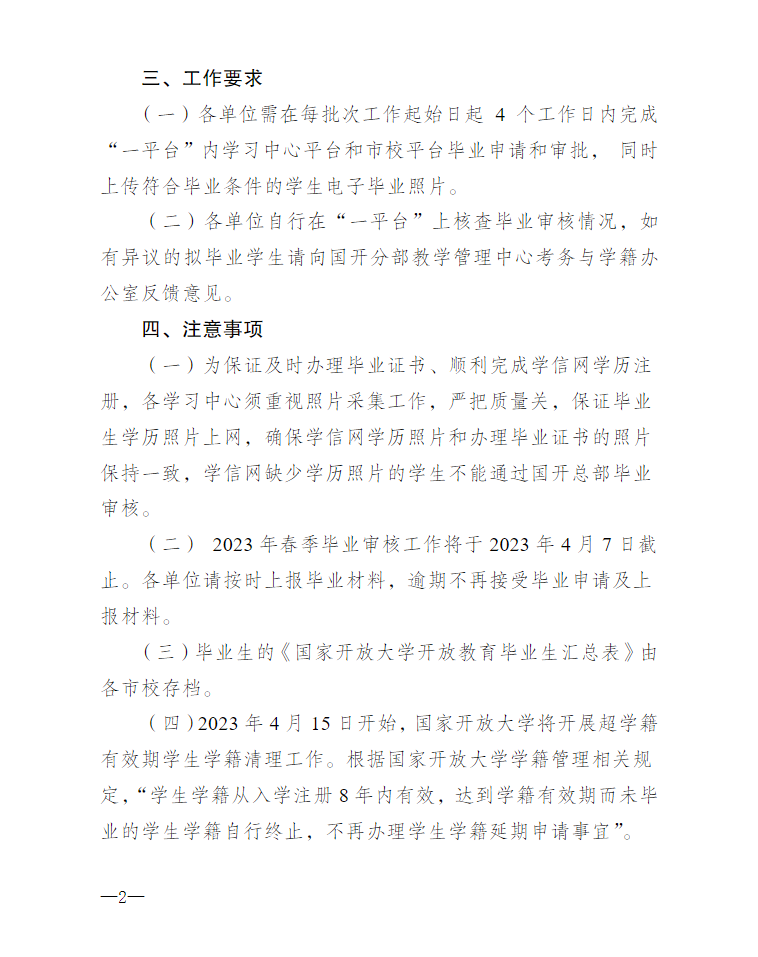 關于辦理2023年春季國家開放大學開放教育畢業審核的通知