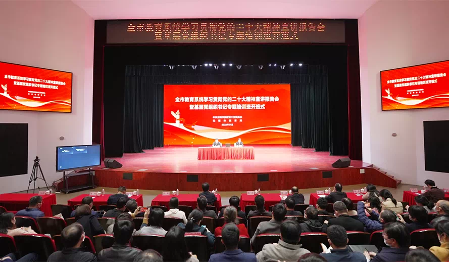為深入學習貫徹黨的二十大精神,11月18日下午,我校組織中層及以上干部、基層黨支部書記參加無錫市教育系統學習貫徹黨的二十大精神宣講報告會暨基層黨組織書記專題培訓班開班式。本次專題培訓班以“線下+線上”相結合形式開展,我校黨委書記奚小網及各基層黨組織書記在主會場參加,校長、黨委副書記張旭,黨委副書記王仁剛、副校長唐東、紀委書記高峻、副校長邵小明以及中層干部在遠教大樓學術報告廳線上觀看。