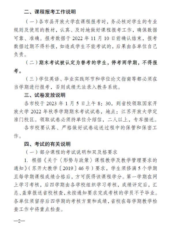 關于2022年秋季學期國家開放大學開放教育期末考試安排的通知