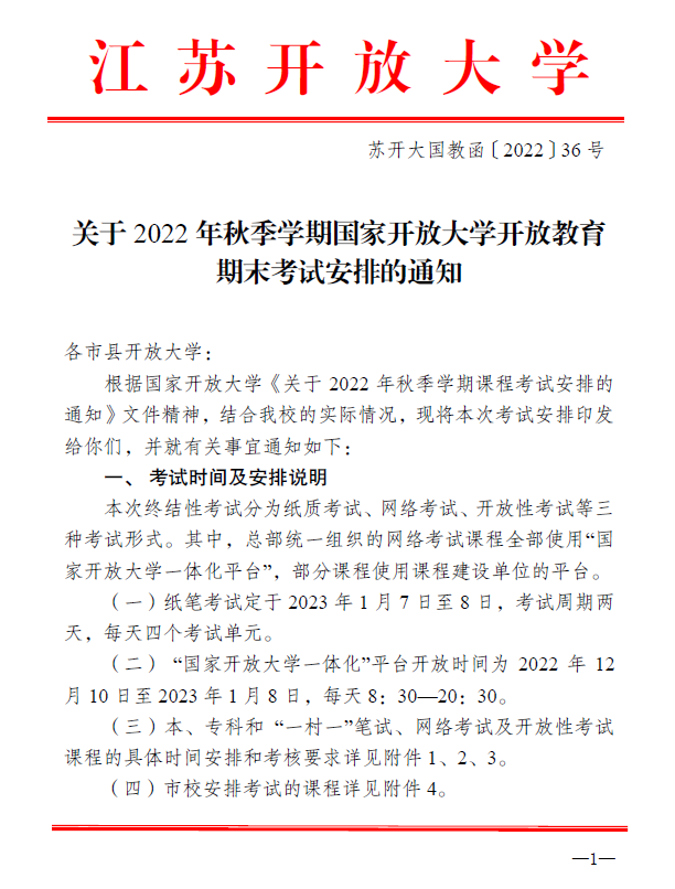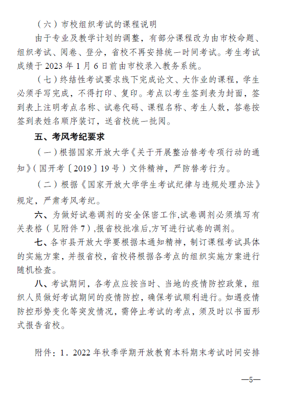 點擊原文下載附件【關于2022年秋季學期國家開放大學開放教育期末考試安排的通知.pdf】