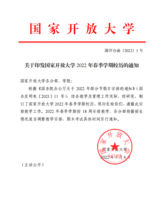 國家開放大學2022春校歷