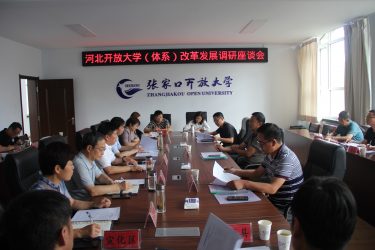 6月15日,河北開放大學副校長湯振林率干部網絡學院、培訓學院有關負責同志到張家口開放大學就體系建設和轉型發展工作進行調研并召開座談會,座談會由張家口開放大學黨委書記楊汝明主持,校領導班子成員、部分中層干部及縣區分校校長參加座談。