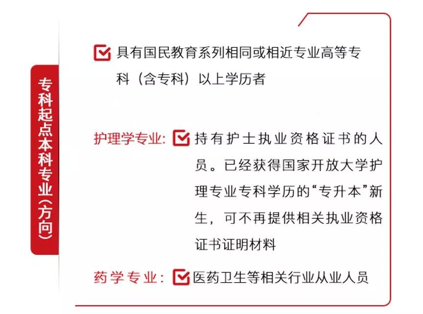 報讀專、本科的學生應提供本人身份證正反面及前置畢業證的原件掃描件;報讀本科還需提供學信網上下載的教育部學歷證書電子注冊備案表電子版(PDF)。護理學專業還需要提供護理執業資格證書和在崗證明的原件掃描件,藥學專業需要提供在崗證明的原件掃描件。在四川省工作、居住的異地學生(外省戶籍)需要到校合影,并提供省內居住證明或工作證明。