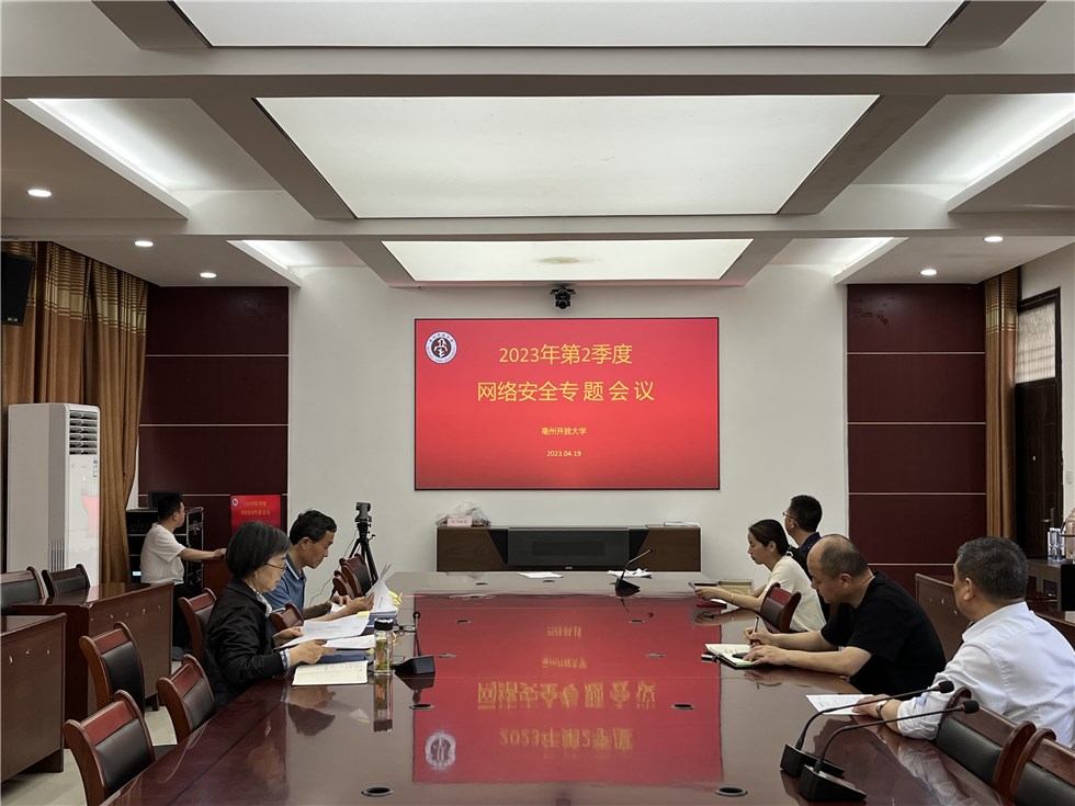 4月19日下午,我校在西會議室召開2023年第二季度網絡安全專題會議,亳州電大黨支部書記、校長閆景俠,副校長王學杰及相關科室負責人參加會議,會議由電教科主任雍貴榮主持。