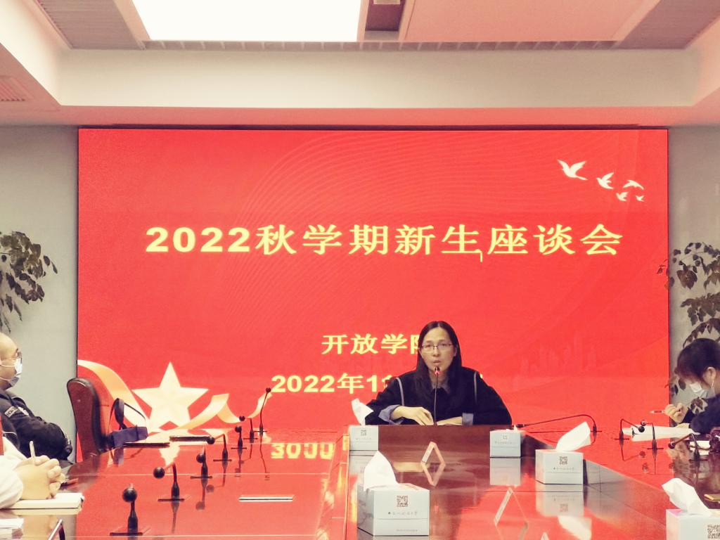 11月27日中午,開放學院在行政樓一樓會議室召開2022秋學期新生座談會,30余名師生參加了會議。會議由開放學院分管教學副院長王艷主持。