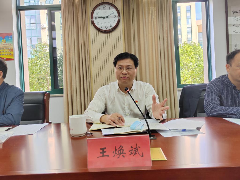 王煥斌要求,全校上下要以強烈的政治責任感和使命感認真學習宣傳貫徹黨的二十大精神,把思想和行動統一到黨的二十大精神上來,要以“九學九講做標桿”落實市委安排,一是要進一步加強黨對教育工作的全面領導,要以深入學習宣傳貫徹黨的二十大精神為主線,全面貫徹習近平新時代中國特色社會主義思想,更加自覺捍衛“兩個確立”、做到“兩個維護”,堅持落實立德樹人根本任務,扎實推進黨建與事業發展深度融合、推動以“五大品牌”為核心的黨建鑄魂育人工程。二是要進一步明確開放大學辦學使命和定位。臺州開放大學作為一所以服務全民終身學習為使命的新型高等學校,要以加快改革發展為目標,全力打造全國一流開放大學;要以服務地方發展為己任,全面融入臺州現代化建設新征程;要以辦好人民滿意的教育為標準,統籌推進學校各項教育優質協調發展;以“兩培養、兩服務、兩助力”為使命,培養合格+特長的有用人才、培養下得去、用得上、留得住的本土化人才,助力“兩個先行”。三是要以全面落實推進實現年度重點任務圓滿收官。要把貫徹落實黨二十大精神轉化為工作的全面落實上,要慎終如始抓好第四季度工作,確保全年工作取得預期好成績,高分實現“六八”考核目標;同時要以“時時放心不下”的責任感,守住校園安全底線,筑牢校園疫情防控屏障,確保陣地穩固、人員穩控、校園穩定。