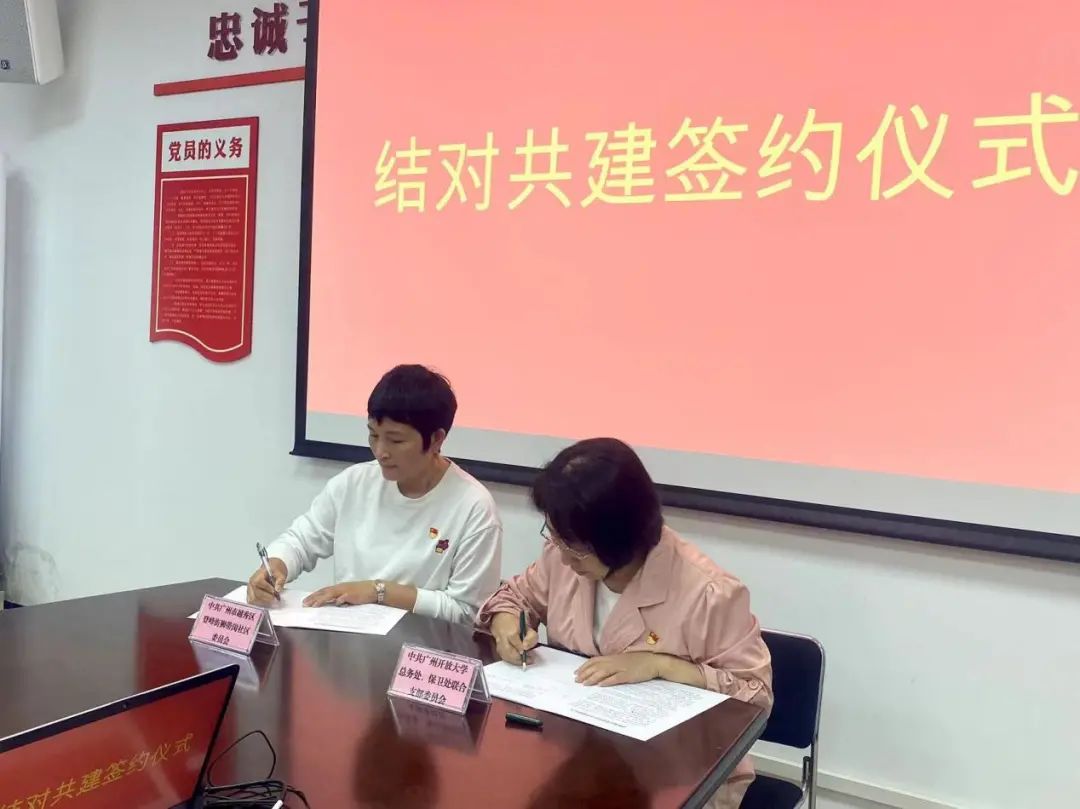 為持續推進“我為群眾辦實事”實踐活動走深走實,推動黨員沉到基層一線深入調研、了解民情、為民服務,更好地將黨員服務精神的發揚深入周邊社區,我校總務處、保衛處聯合黨支部于4月3日下午舉行與越秀區登峰街道獅帶崗社區結對共建的簽約儀式。