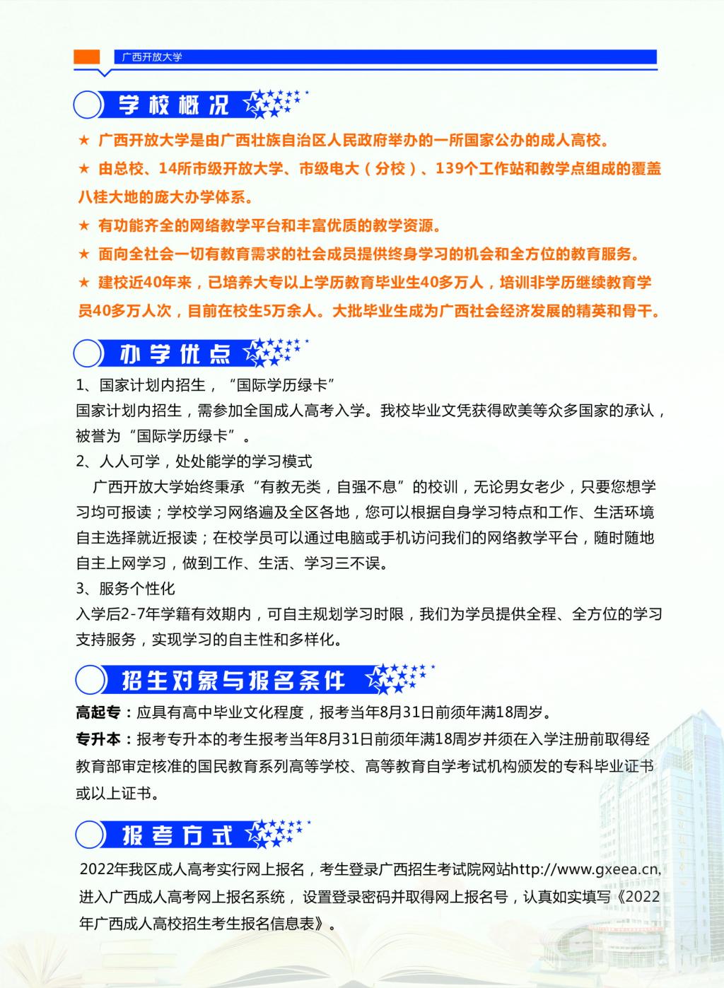 2022年廣西開放大學成人高等教育招生簡章