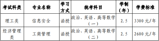 二、招生專業、層次、學習形式、統考科目、修業年限、學費
