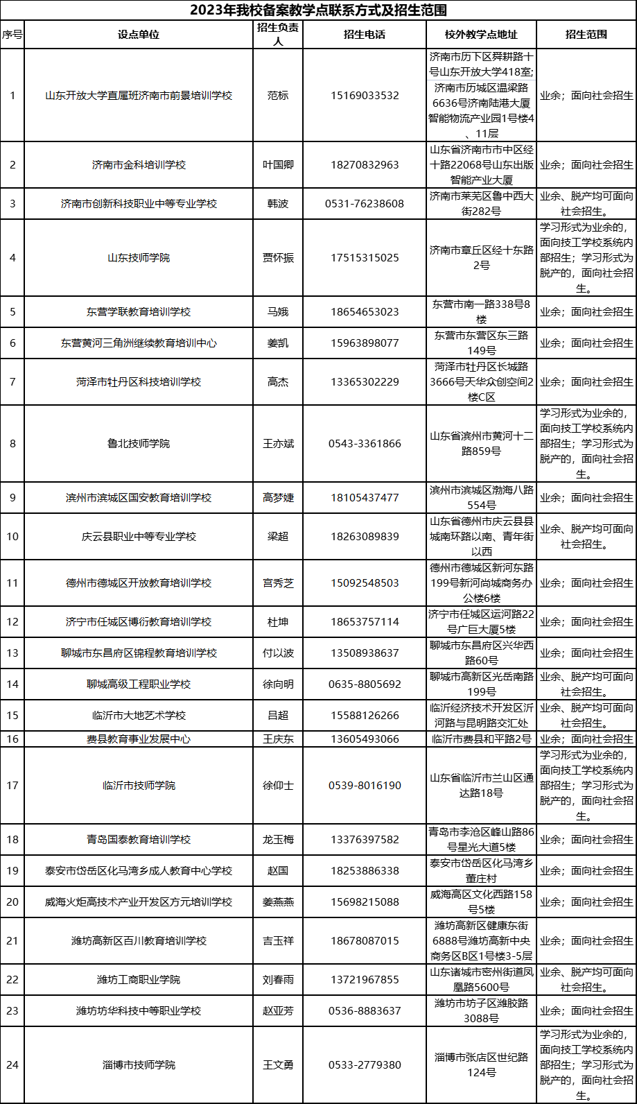(4)2023年我校備案教學點聯系方式、招生范圍詳見附表。