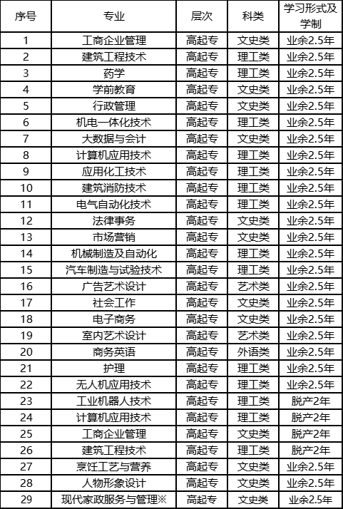 ★注:高中起點專科,學籍注冊后4年內有效,脫產學習最短學習年限為2年,業余學習最短學習年限為2.5年。