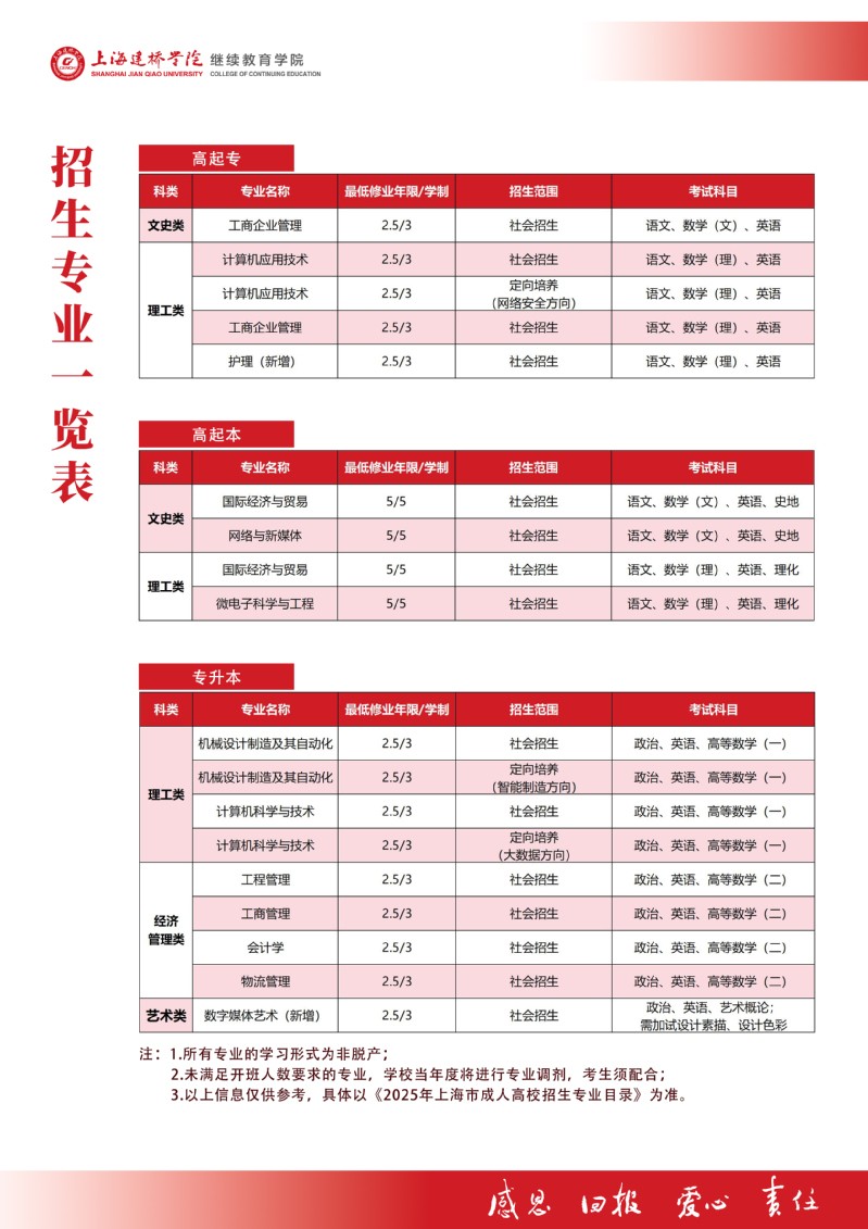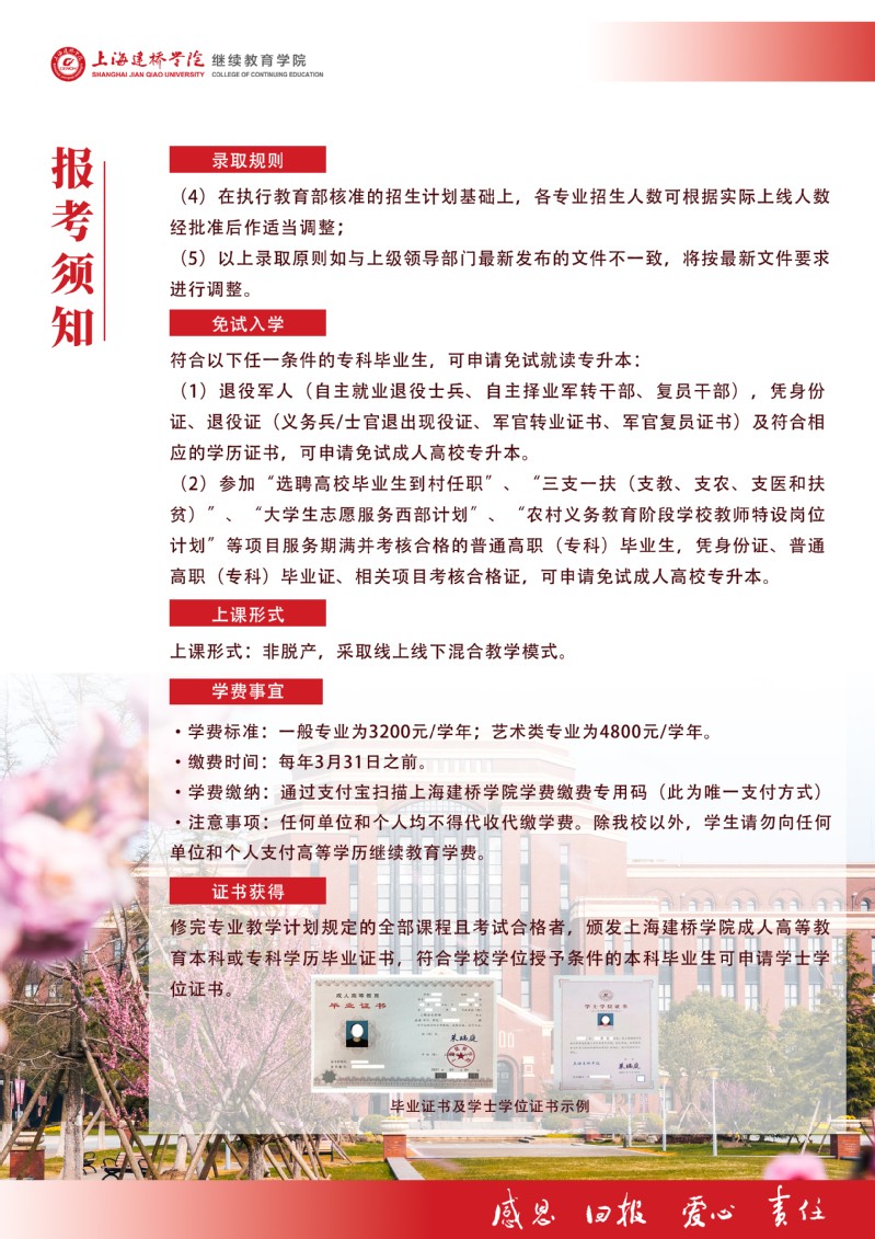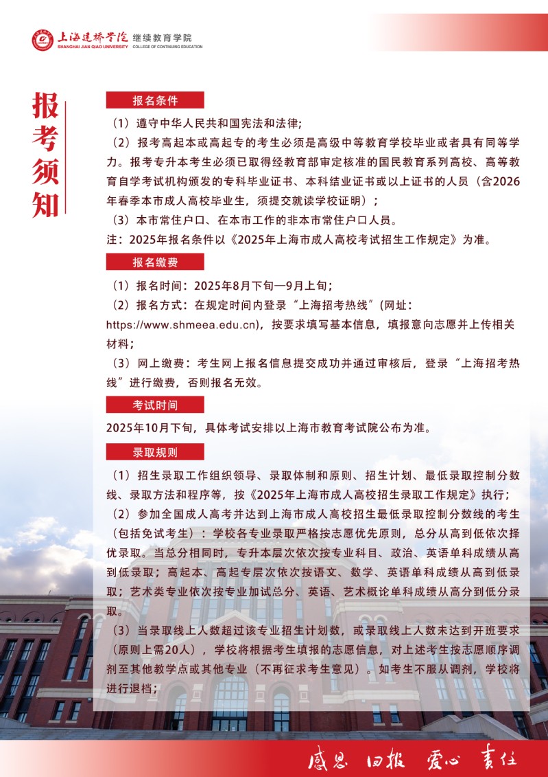 2025上海建橋學院高等學歷繼續教育招生簡章