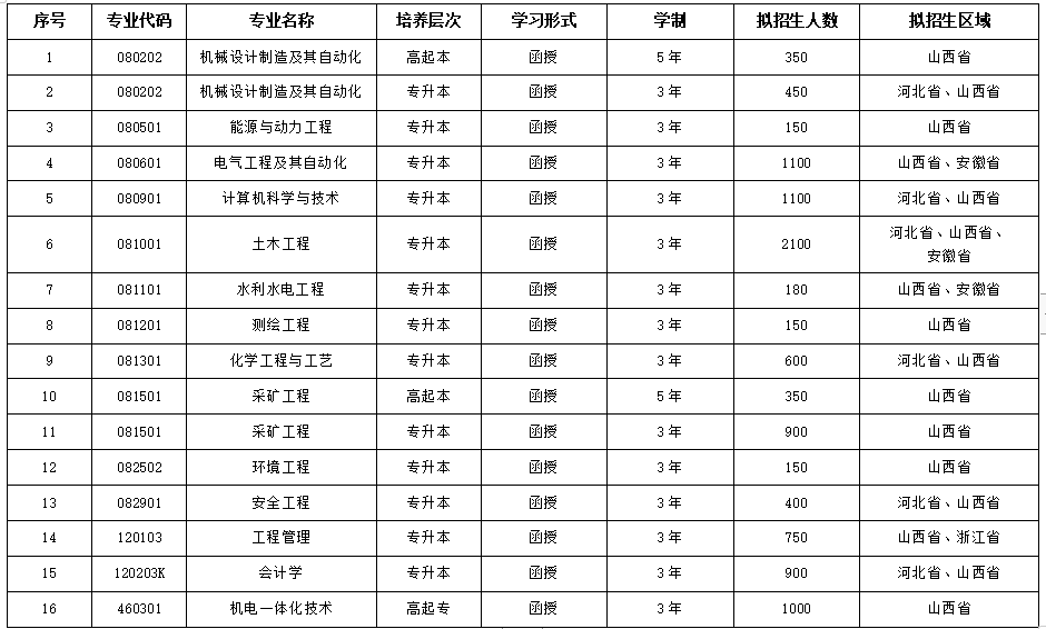 太原理工大學繼續教育學院2023年成人高等教育計劃一覽表