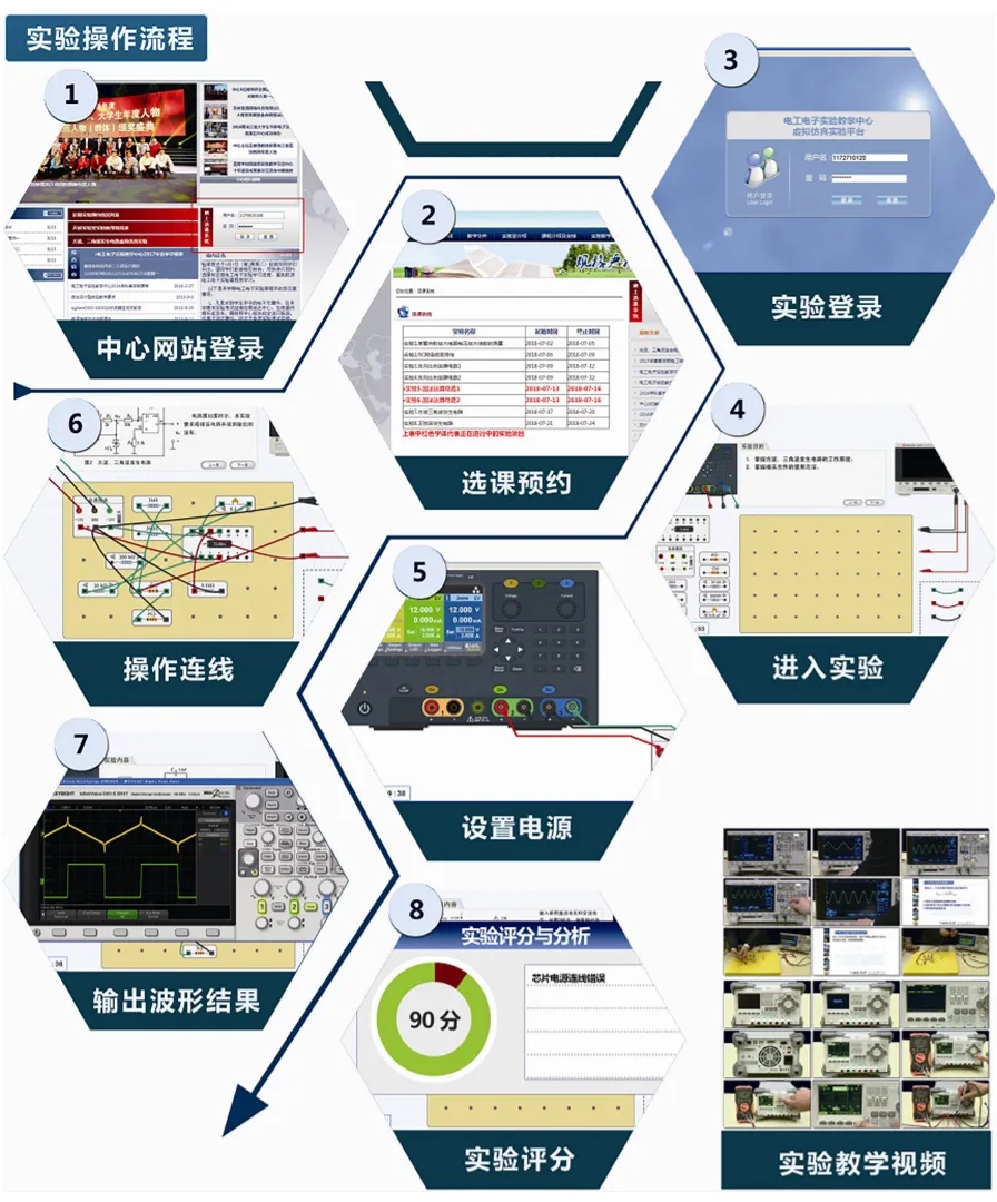 遠程在線實驗采用了將實驗室硬件資源按照時間片劃分,在所預約的時間內,每人獨享1個實驗臺的實驗資源,在當前實驗臺沒有預約的前提下,采用先到先得的實驗資源全開放方式,通過“電工電子實驗MOOC”的建設,為學生提供優質的視頻教學資源。