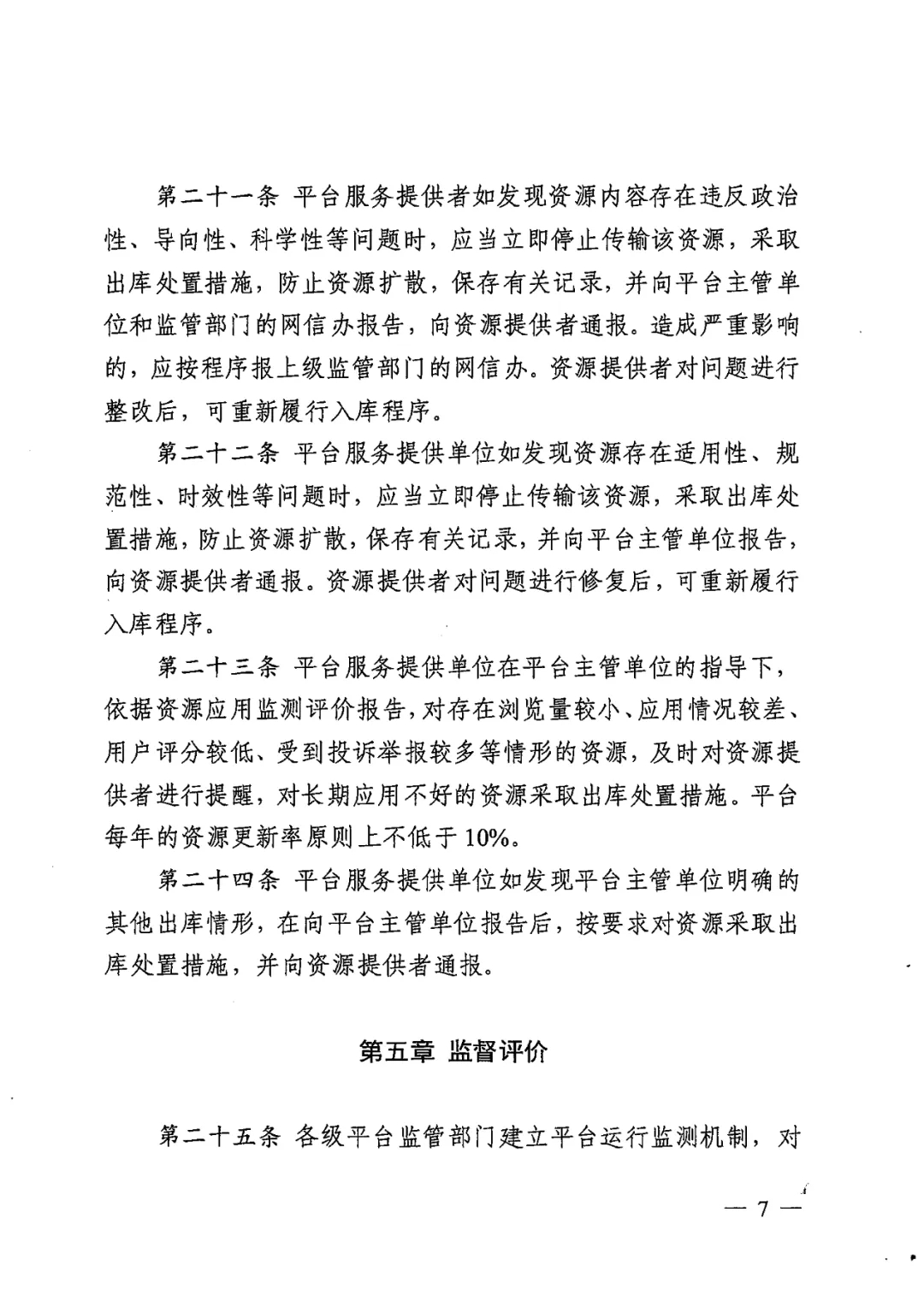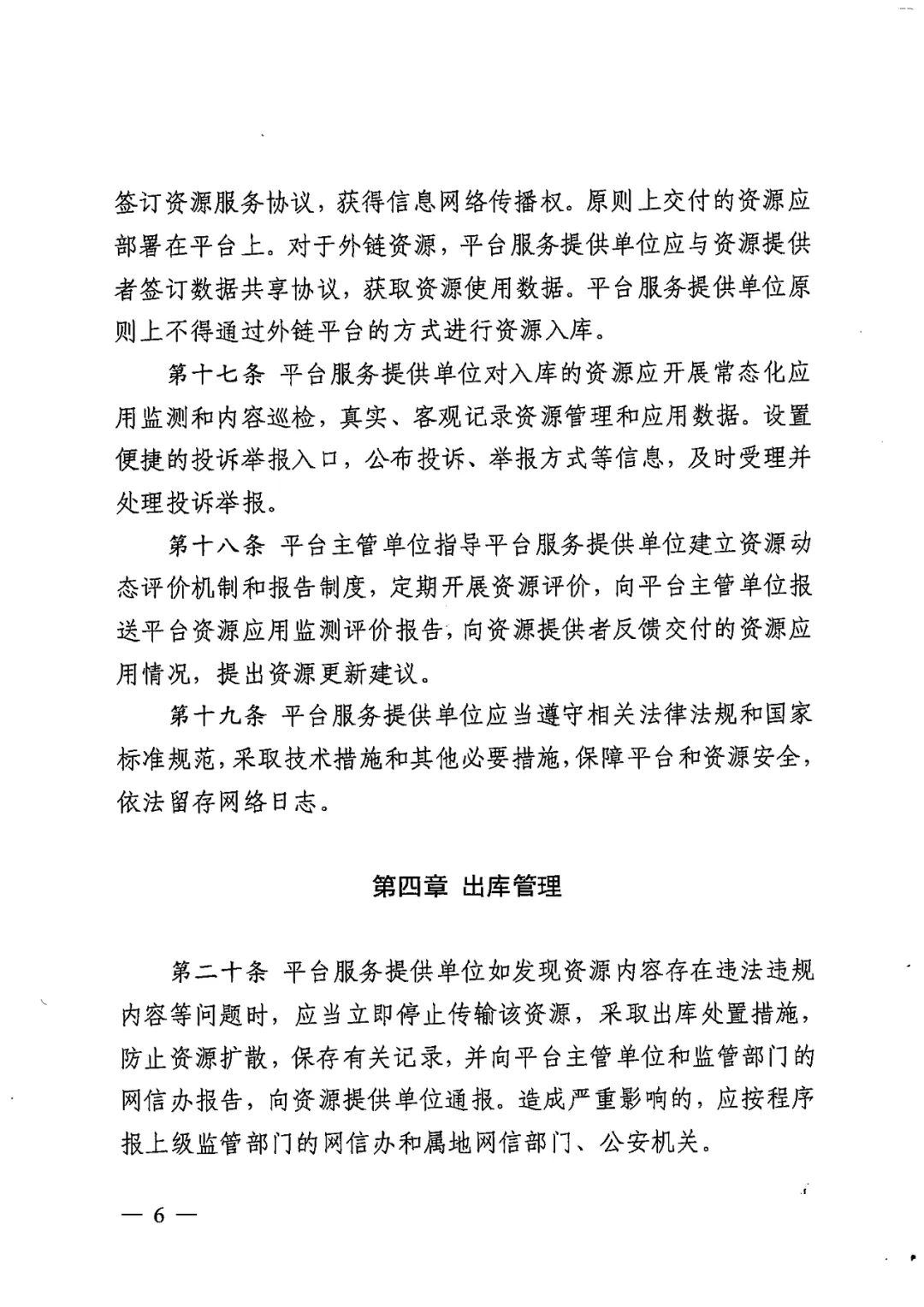 《規范》指出,平臺資源的入庫出庫應堅持“擇優入庫、常態監測、定期評估、動態調整、公益服務、安全可靠”的原則。