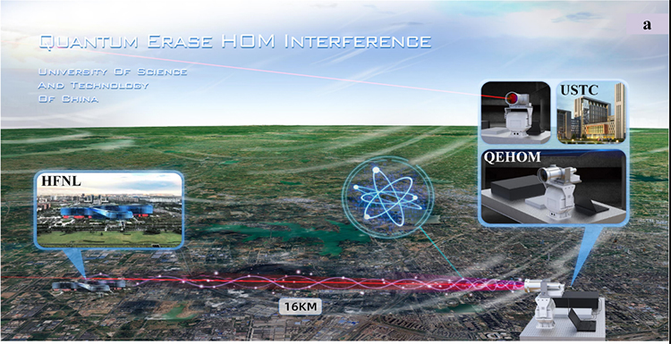 薛向輝課題組利用HOM干涉和高階量子擦除使得來自不同光源的獨立光子展現出量子干涉現象,并基于該理論開發了一種基于上轉換探測器的雙光子干涉大氣激光雷達系統。這種方法具有單光子靈敏度、高量子效率、大檢測帶寬和多波長適用性。使用量子擦除結合光學壓縮采樣方法,該量子雷達系統能夠以MHz的采樣率記錄超過17 GHz帶寬(對應13km/s)的光學信號,解決了超高速目標連續檢測中弱信號的高采樣率和大數據存儲量問題,為實現高達數十公里/秒的超高速連續速度檢測鋪平了道路。