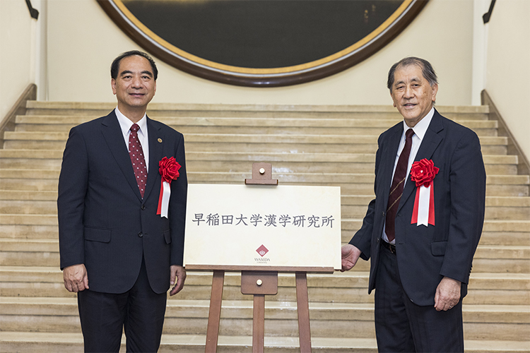 下午,代表團一行出席早稻田大學漢學研究所揭幕儀式,龔旗煌與田中愛治共同為研究所成立揭幕,雙方代表各自學校簽署了《北京大學-早稻田大學關于漢學研究所的合作意向書》。日本亞洲共同體文化合作機構會長、日本原首相福田康夫,中國駐日本大使館吳江浩分別就漢學研究所成立發來賀信。日中友好會館會長、日本原駐華大使宮本雄二,中國駐日本大使館教育參贊郭軍,康師傅控股有限公司董事長魏宏名出席儀式。隨后,代表團參觀了“早稻田大學與北京大學1882—1921特別展”。