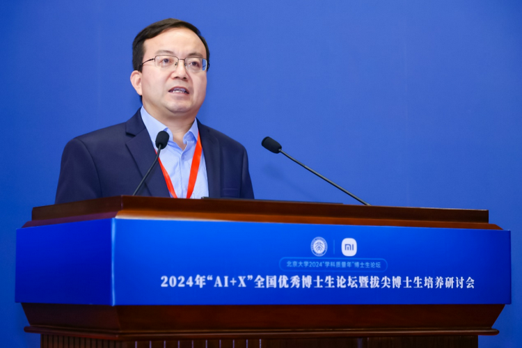 2024年9月28日,2024年“AI+X”全國優秀博士生論壇暨拔尖博士生培養研討會在北京大學英杰交流中心舉行。此次論壇由北京大學研究生院指導,北京大學計算機學院主辦,聯合智能學院等相關院系共同組織實施。中國科學院院士、北京大學計算機學院梅宏教授、北京大學研究生院常務副院長陳鵬教授、計算機學院院長胡振江教授、小米集團AI實驗室主任、NLP首席科學家王斌博士等領導嘉賓出席會議,全國10余所國內拔尖高校師生代表以及校內各相關單位領導和老師共同參會。此次論壇共設1個主論壇和5個分論壇,涵蓋了計算機和人工智能與多個學科的交叉融合,線上與線下有近兩萬名專家學者和師生參與其中。上午主論壇分別由北京大學計算機學院副院長郭耀教授和副院長崔斌教授主持。
