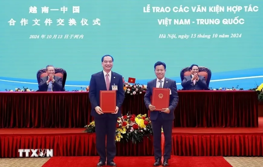 10月13日,在兩國領導人共同見證下,北京大學校長龔旗煌與越南河內國家大學校長黎君交換《北京大學-越南河內國家大學諒解備忘錄》。