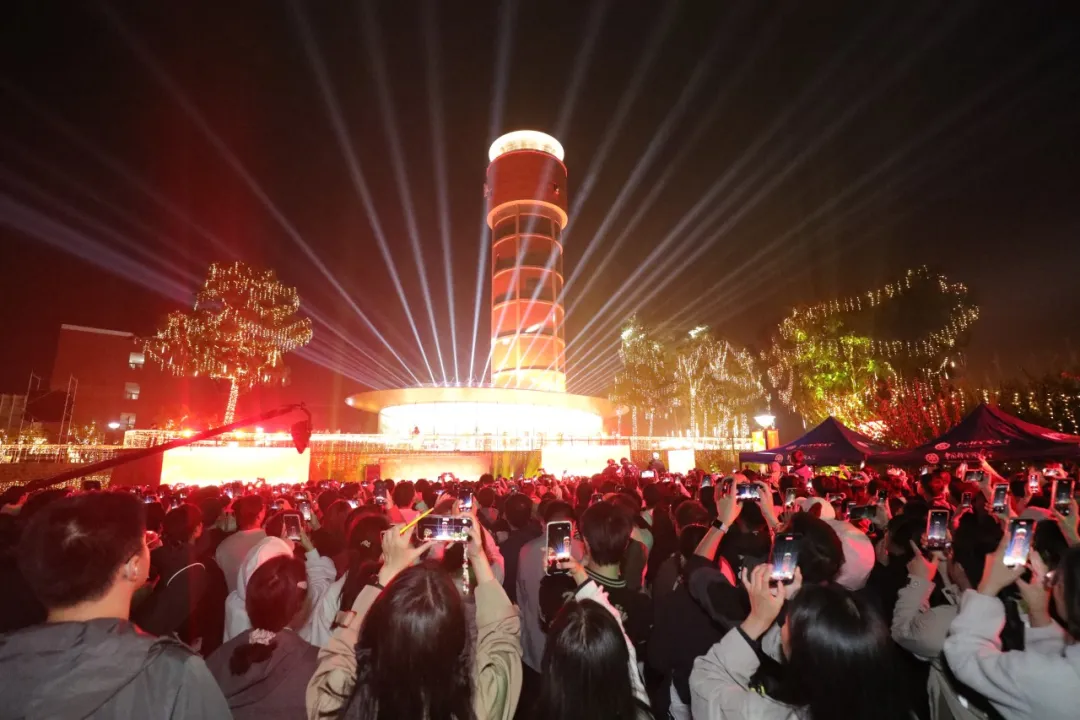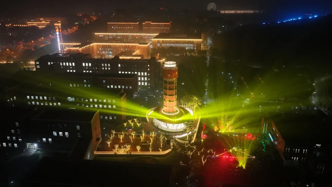 10月13日晚,國科大在雁棲湖校區舉行“兩彈一星”紀念地燈塔點亮儀式。