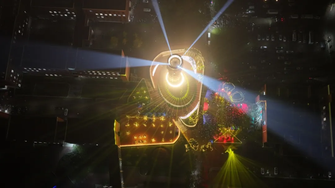 據悉,國科大雁棲湖校區“兩彈一星”紀念地燈塔原系懷柔火箭試驗基地水塔,作為懷柔火箭試驗基地中的最高建筑,它既是整個校區的制高點,也是全部區域的視覺焦點。國科大這次將水塔改建為紀念燈塔,并將底部區域拓展成書吧,旨在使書吧和燈塔融為一體,成為校園內傳承“兩彈一星”精神的一處文化地標。燈塔的點亮,標志著中國科學院紀念原子彈成功試爆60周年系列活動的啟動。