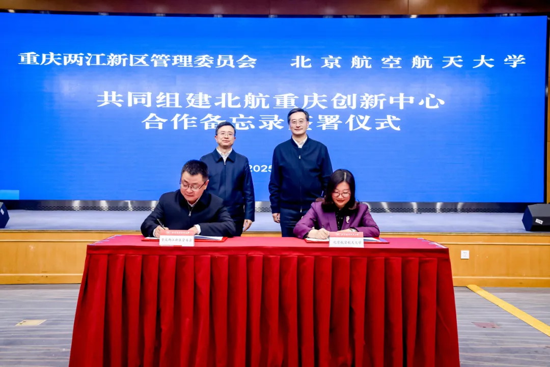 1月15日下午,北京航空航天大學與重慶兩江新區管理委員會共同組建北航重慶創新中心合作備忘錄簽署儀式在如心會議中心大報告廳舉行。重慶市委常委、兩江新區黨工委書記羅藺,兩江新區黨工委副書記皮濤,北航校長王云鵬,副校長鄧怡,中國工程院院士蘇東林參加簽署儀式。