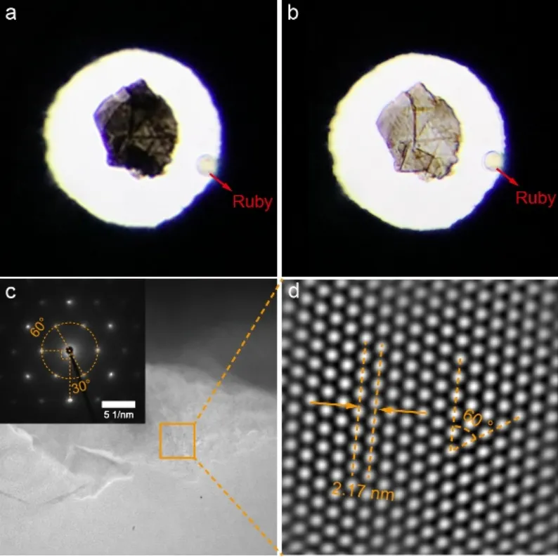 金剛石不僅是人們喜愛的寶石,更是集極高硬度、極耐磨、極高熱導率、極寬禁帶等優異性能于一體的重要前沿戰略材料,被稱為“最鋒利的工業牙齒”和“國家戰略物資”,立方金剛石已經在精密加工、資源開采、信息通訊以及“深空、深地、深海”極端環境等國家重大需求領域發揮了重要作用。六方金剛石首次被發現是在美國亞利桑那州的魔谷隕石中(1967年),這種罕見而珍貴的鉆石也因此被稱為“隕石鉆石”,普遍認為是石墨在隕石撞擊地球形成的高溫高壓條件下轉變而成的,理論預測它比立方金剛石還堅硬。但由于隕石快速沖擊時間短,六方鉆石形成的條件極為苛刻,只有納米大小,且與隕石共生,因此,六方鉆石能否獨立存在一直存在爭議,實現純相的人工合成極具挑戰。最大的難點是高溫高壓下六方金剛石的形成能壘高于立方金剛石,高溫高壓產物往往以立方金剛石為主,難以形成六方金剛石,因此,雖然經過半個多世紀的努力,純相六方金剛石的人工合成一直未能實現。
