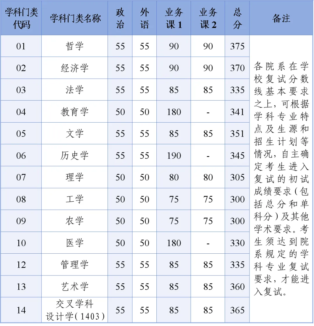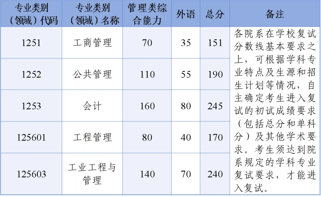 不低于國家基本分數線中A類考生相應學科專業的總分要求。
