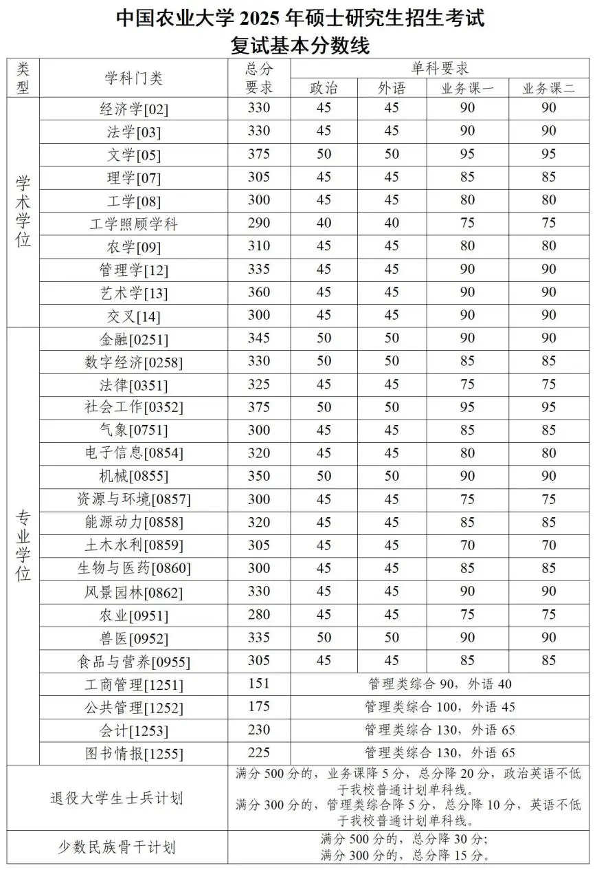 1.上表為我校復試基本分數要求,生源充裕學院可根據整體考試情況、招生計劃、學科專業特點等,上調分數要求,但差額復試比例一般不得低于120%,報考該類學院的考生須達到學院公布的復試分數要求才能參加復試。