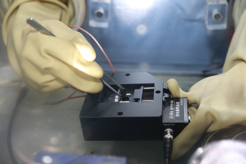 圖4 團隊成員在測試鈣鈦礦太陽能電池光電性能