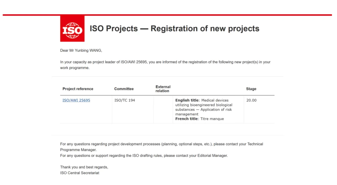 近日,在國家藥監局重組膠原蛋白相關標準工作的基礎上,由四川大學牽頭的國際標準提案《利用生物工程生物物質制備的醫療器械-應用風險管理》(英文:Medical devices utilizing bioengineered biological substances--Application of risk managemen)正式通過國際標準化組織醫療器械生物學和臨床評價標準化技術委員會(ISO/TC194)的立項評審。該標準是全球首個針對生物工程生物物質醫療器械風險管理的國際標準,旨在規范和建立利用重組膠原蛋白等合成生物學新材料及先進生物技術制備的醫療器械的安全評估體系。我校國家生物醫學材料工程技術研究中心主任/生物醫學工程學院院長王云兵教授擔任項目負責人進行答辯匯報。此次立項成功,體現了國際社會對我國在該領域技術積累和標準化能力的認可,也為我國未來在生物醫藥產業的國際競爭中爭取更大話語權奠定了基礎。