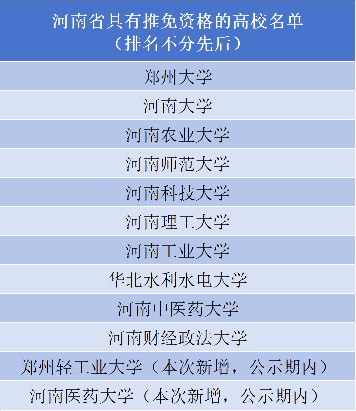 隨著本次新增推免資格高校擬推薦名單的“官宣”,河南省未來將有12所高校具備保研資格。