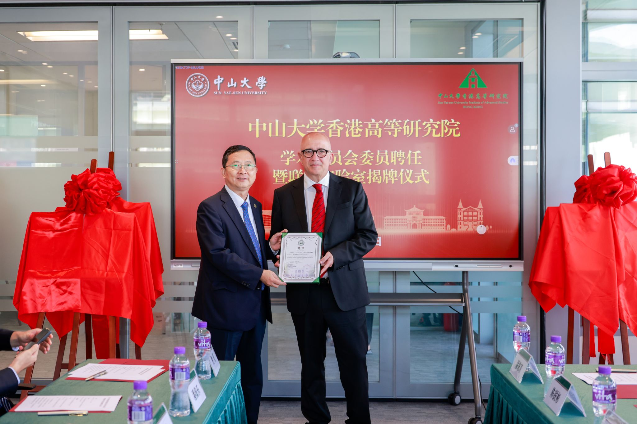 8月12日下午,中山大學香港高等研究院(以下簡稱“高研院”)在香港科學園舉行學術委員會委員聘任儀式暨聯合實驗室揭牌儀式。