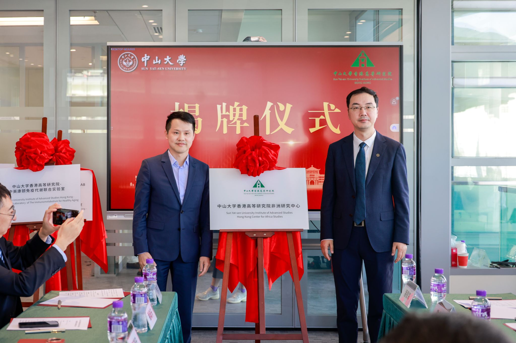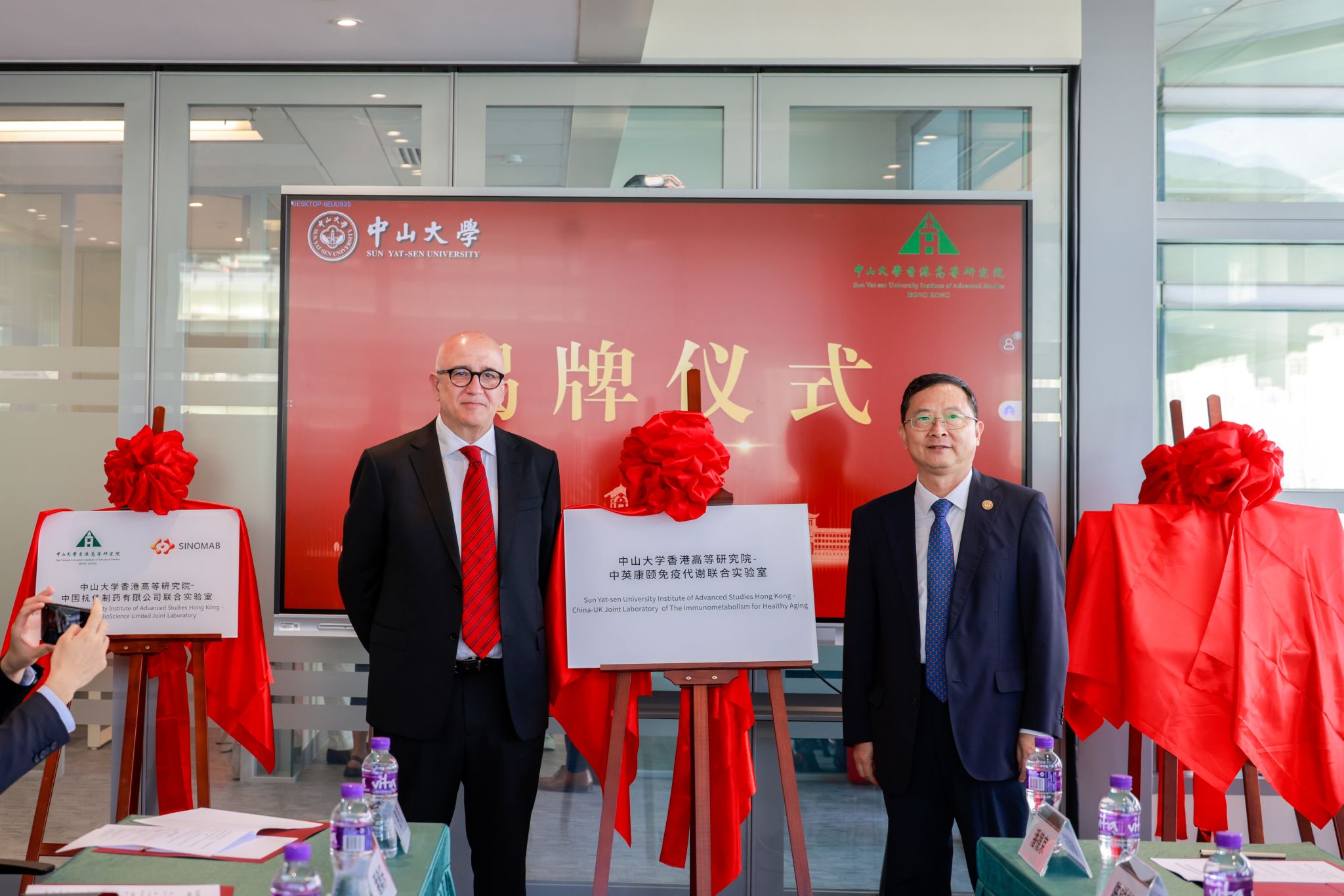 高研院還分別和英國劍橋大學心血管代謝中心安東尼奧教授團隊建立中英康頤免疫代謝聯合實驗室,和法國巴黎高等礦師學院管理研究中心潘燊樂教授團隊建立中法智慧物流聯合實驗室,和香港上市公司中國抗體制藥有限公司梁瑞安博士團隊建立創新藥物研發聯合實驗室,和廣州謝諾投資集團建立非洲研究中心。會上,中山大學校長高松、副校長鄭躍為四家聯合實驗室揭牌。此次聯合實驗室的落地,將在老齡健康、智慧物流、生物醫藥、非洲研究等領域產出原創成果,充分體現中山大學與世界知名大學及粵港澳大灣區各界的深度融合,不斷發揮橋梁紐帶作用,助力香港建設國際創科中心。
