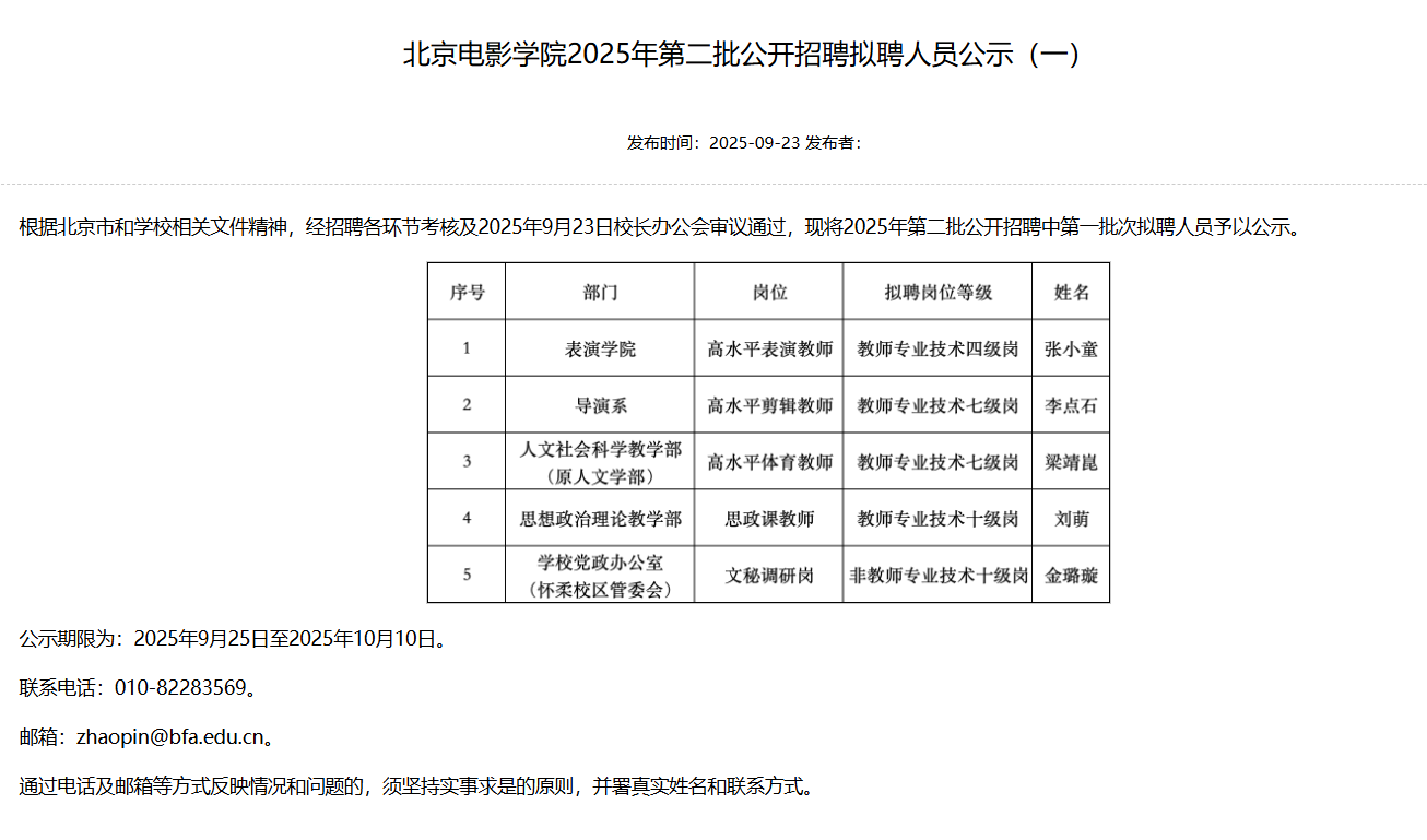 9月25日,北京電影學院人事處公示了北京電影學院2025年第二批公開招聘擬聘人員。其中,國乒名將梁靖崑擬任人文社會科學教學部(原人文學部)高水平體育教師,該崗位為教師專業技術七級崗。