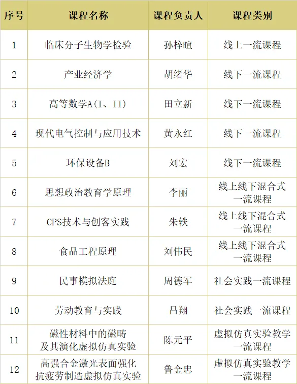 江蘇大學此次被認定的12門國家級一流本科課程