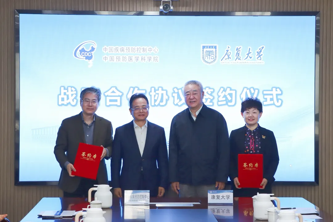 3月26日上午,中國疾病預防控制中心(中國預防醫學科學院)與康復大學戰略合作協議簽約儀式在康復大學舉行。中國工程院院士、中國疾病預防控制中心(中國預防醫學科學院)主任(院長)王健偉,黨委書記、副主任(副院長)張國新,副主任(副院長)施小明出席儀式。中國工程院院士、康復大學校長董爾丹主持并致歡迎辭。黨委書記劉軍,分管日常工作的副校長姜宏,副校長畢建國、劉奇跡,紀委書記侯典峰出席儀式。