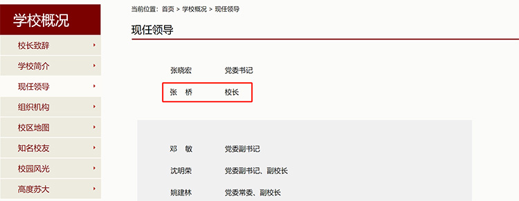 6月10日,蘇州大學官網“現任領導”一欄顯示,張橋已任該校校長。