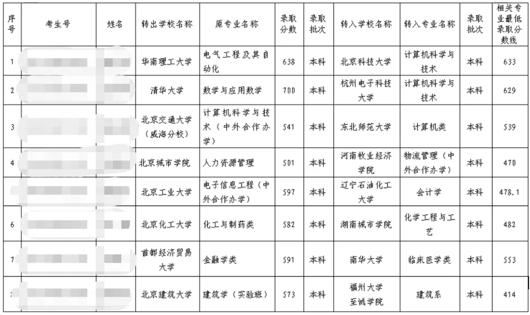 更早前,2023年7月10日,北京市教育委員會也曾公布了一批跨省轉學公告,均為降格轉學:有人從北京航空航天大學自動化專業轉到了西南大學統計學專業,有人從北京外國語大學外交學專業轉到了沈陽工業大學英語專業,還有人從北京理工大學智能無人系統專業轉到了江蘇師范大學電子信息工程專業。