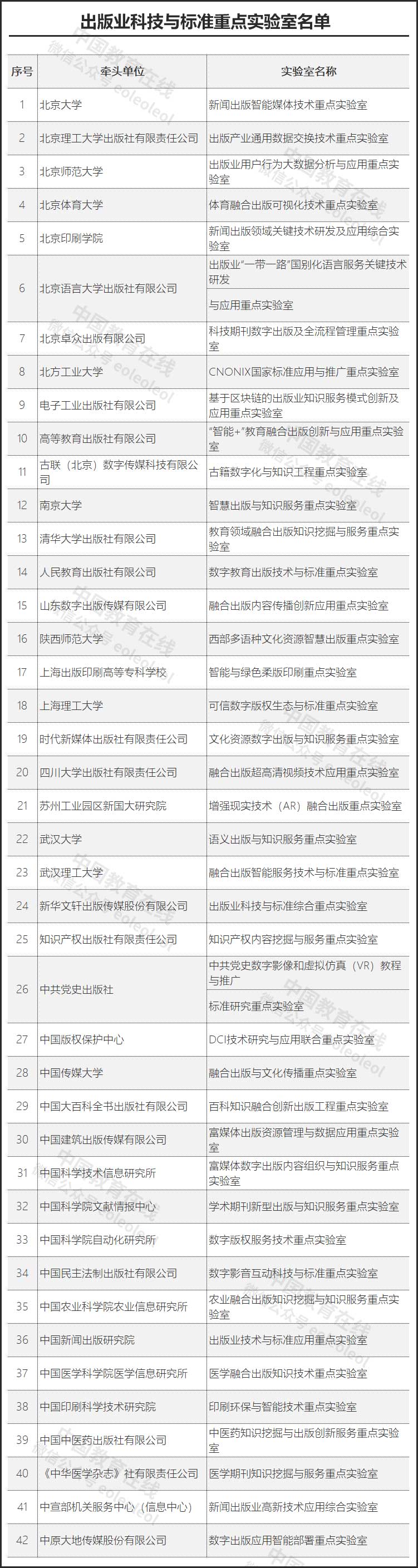 42個!國家新聞出版署發布出版業科技與標準重點實驗室名單