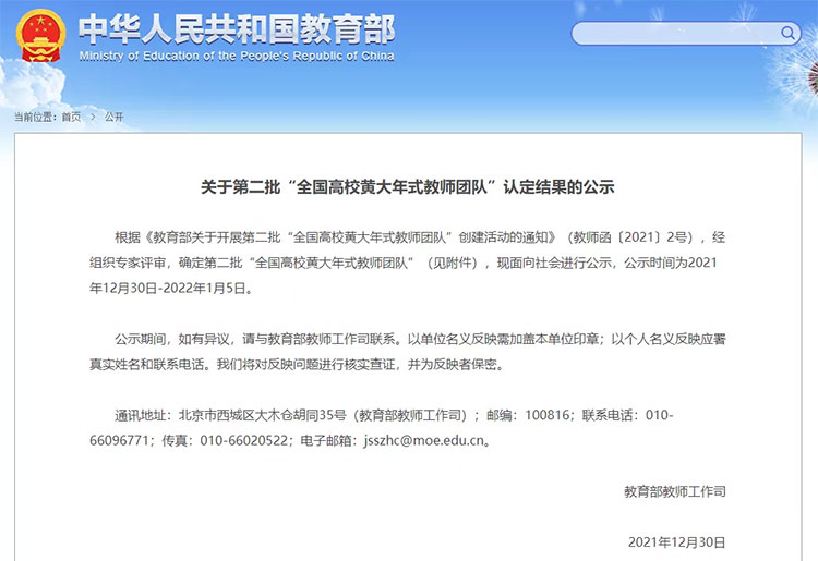 2018年1月,在各地推薦基礎上,教育部審核認定了首批201個“全國高校黃大年式教師團隊”。