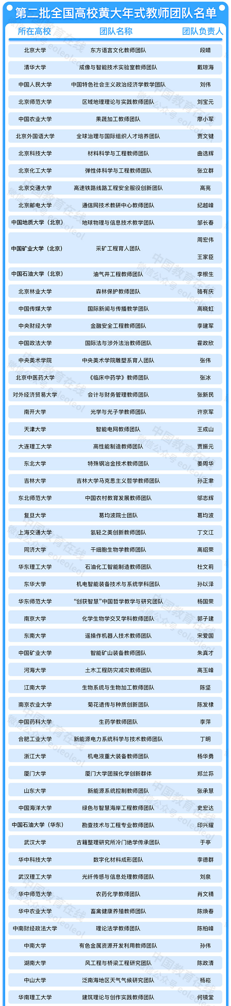 從第二批“全國高校黃大年式教師團隊”名單來看,200所高校中的200個團隊入選,每所高校各有一個教師團隊入選,其中包括多位院士。
