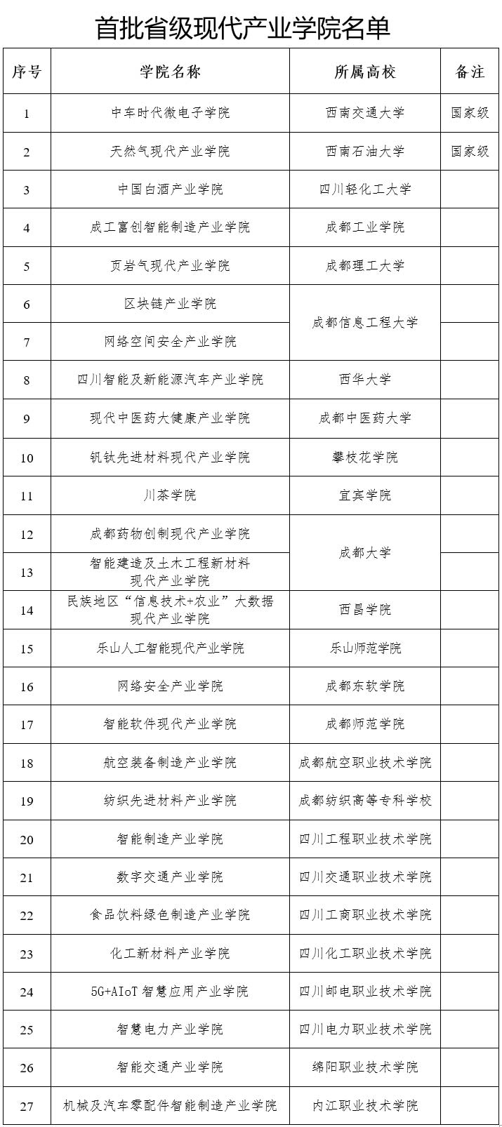 四川省首批27個現代產業學院建設名單公示