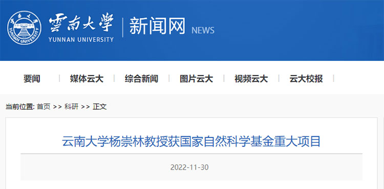 由云南大學生命科學學院楊崇林教授牽頭,云南大學、中科院生物物理研究所、武漢大學、首都醫科大學4家單位聯合申報的“溶酶體穩態調控與相關疾病”項目獲批立項,獲資助直接經費1500萬元。云南大學獲得本次國家自然科學基金重大項目的成功立項,是近年來云南高校在該類項目上的首次突破。