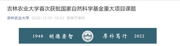 吉林農業大學孫文獻教授申報的“病原真菌致病的分子機制”獲得國家自然科學基金重大項目課題資助,直接費用300萬元,執行期為五年。這是吉林農業大學首次獲批國家自然科學基金重大項目課題。